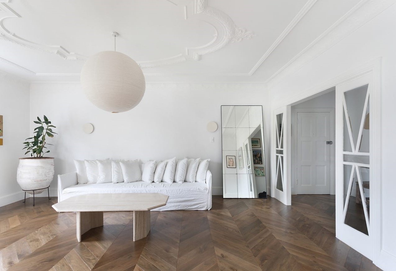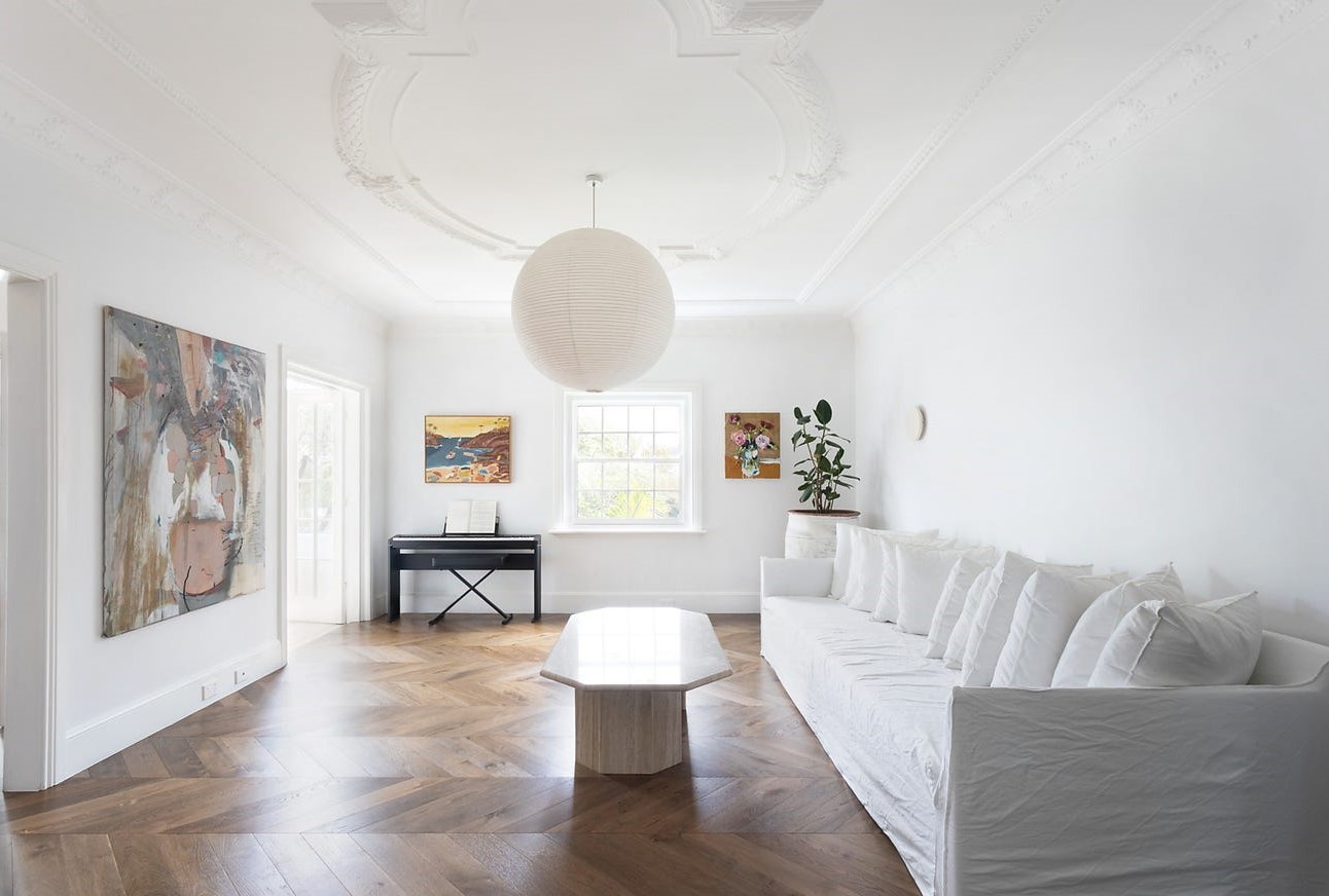 A light-filled haven of generous proportions with high patterned ceilings and windows on three sides, the three-bedroom two-bathroom apartment impresses with no common walls and easy access to a secure garage with a driveway behind providing parking for 2nd car.